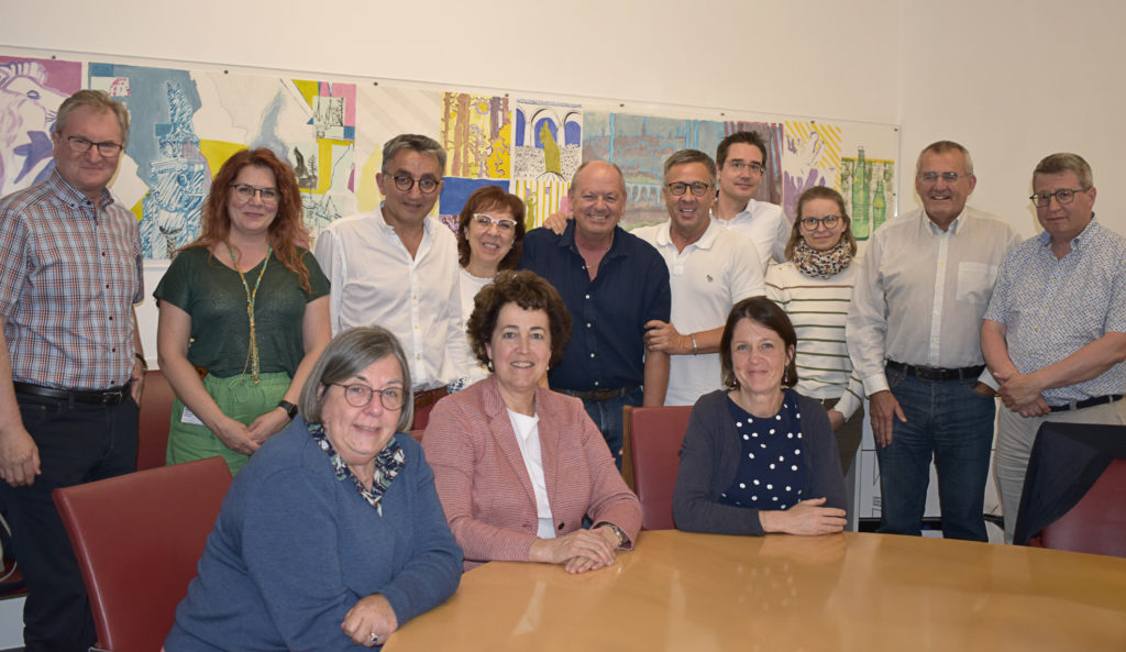 - Au 2nd plan, de gauche à droite : Fernand Maurer (APL), Raluca Marinescu (HRS), Dr Rafak Triki (HRS), Dr Evdokia Alvanou (CHdN), Dr Marco Hirsch (HRS), Pr Jean Sibilia (HUS), Eric Lampach (HRS), Claire Barbieux (IBBL), Pr Patrick Durez (UCLouvain), Dr Claude Heuschling (CHEM).